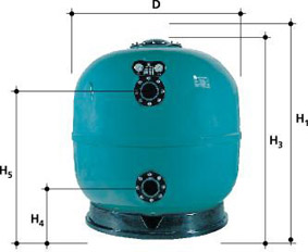 Ø 1250 mm GEMAS FILTREX Пясъчен филтър за обществени басейни (ф90мм). Стъкло-полиестерен филтър обурудване: комплект двоен монометър с обезвъздушител, скорост на филтрация : 60м³/ч
